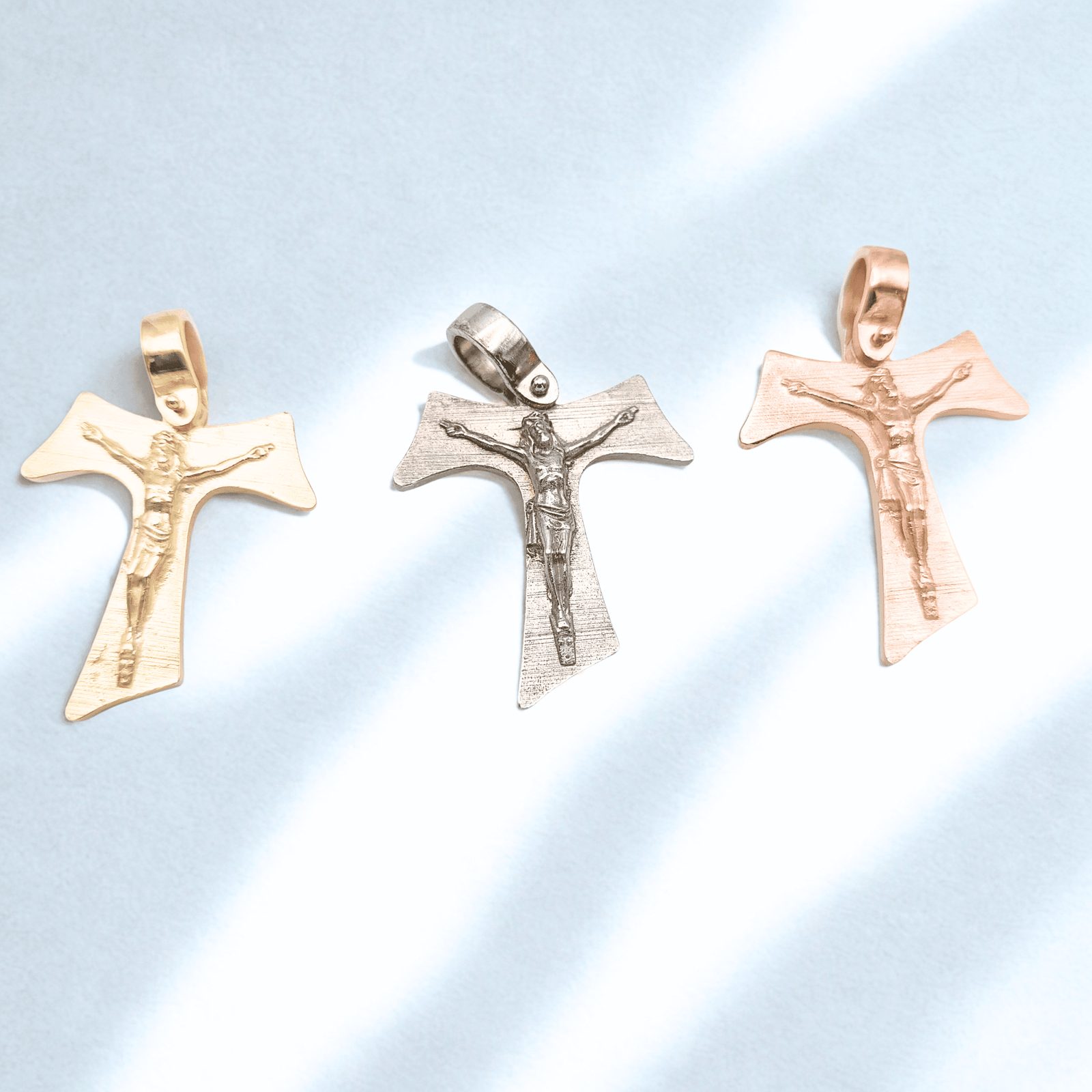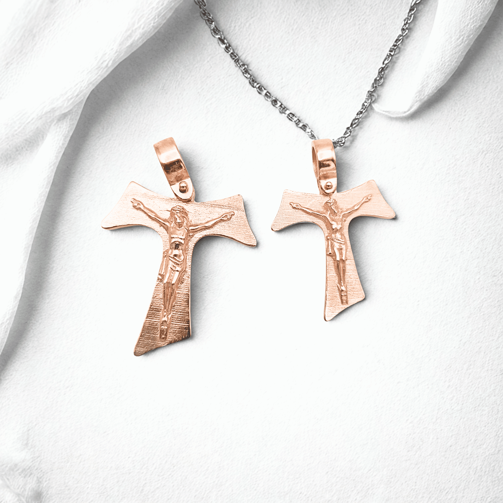 Franciscan Tau with Jesus in 925 silver plated in rose gold.