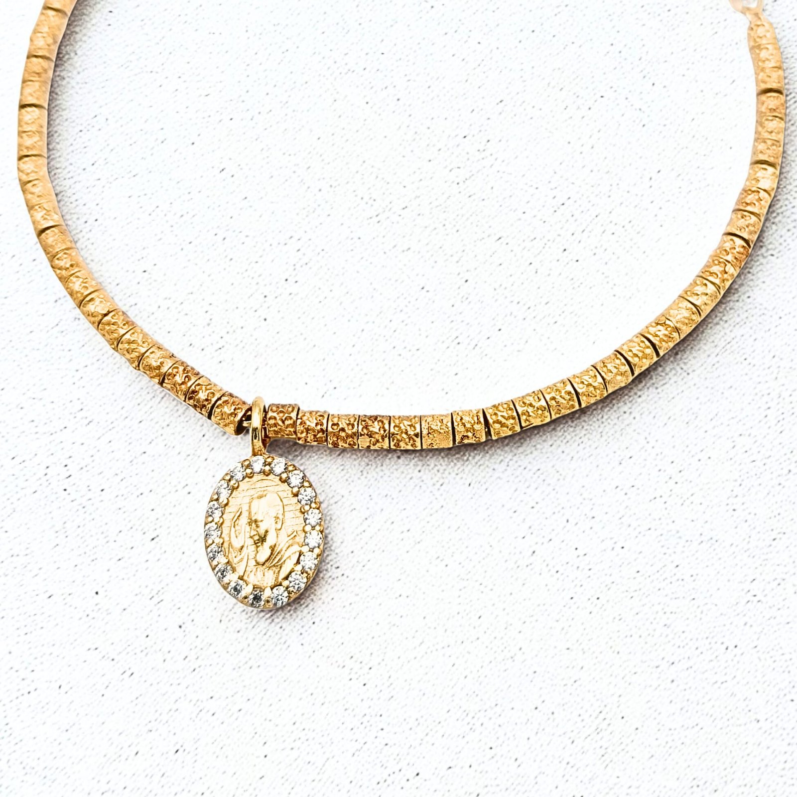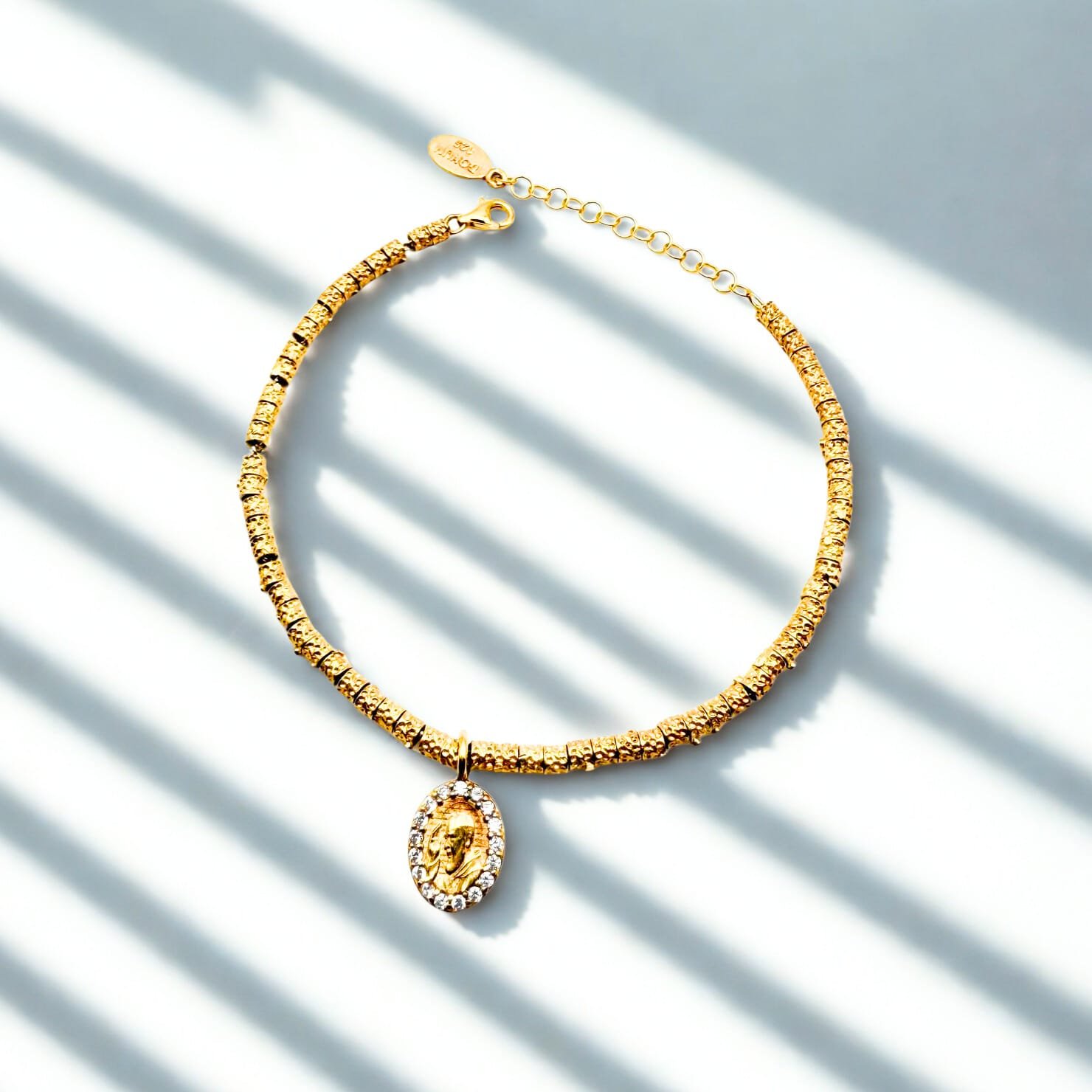 Bracciale con pepite e medaglia PADRE PIO in argento 925 placcato in oro giallo con zirconi bianchi.