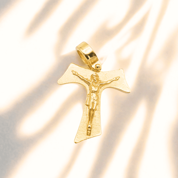 Tau Francescano con Gesù in argento 925 placcato in oro giallo.